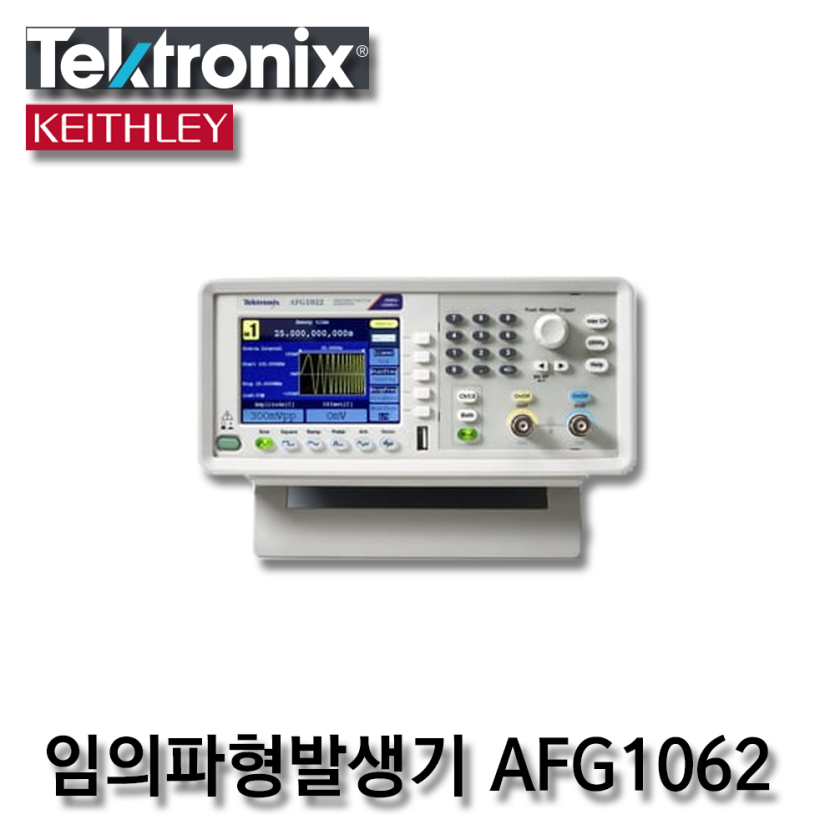 Tektronix AFG1000 임의/함수 발생기는 25MHz 또는 60MHz 대역폭, 2개의 출력 채널, 1mVpp ~ 10Vpp의 출력 진폭을 전체 대역폭에 걸쳐 사용할 수 있으며 랩에 필요한 모든 종류의 파형을 생성합니다